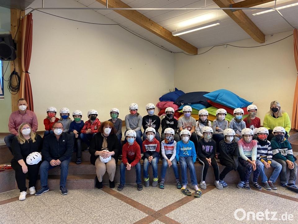 „Sicherheit geht vor“, legte Robert Schmid den Kindern ans Herz. „Und der Schutz des Kopfes ist überhaupt das Wichtigste, sollte es doch einmal zu einem Sturz kommen“, meinte auch die Rektorin Gabriele Appl zusammen mit den beiden Klassensprechern der Klasse 4b, die sich im Namen der Kinder und der Schulleitung mit Gabriele Appl und Sandra Weber für dieses "sinnvolle und nachhaltige Geschenk" bedankten, "denn viele weitere Schulkindergenerationen werden es noch nutzen können".