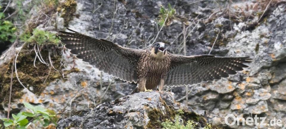 Volltreffer bei der Fotopirsch: Johannes Wolf lichtet jungen Wanderfalken beim Abflug ab