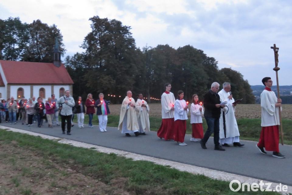 Die Stauber-Moidln mit Rita Butz an der Zither gestalteten die Eucharistiefeier sowohl gesanglich als auch instrumental. Danach zogen die Gläubigen in einer Lichterprozession hinaus in die Nacht und ließen das Fatima-Lied erklingen. Am Wegkreuz bei Drechselberg bat Diakon Dieter Gerstacker in den Fürbitten um Gottes Hilfe und Schutz für alle Menschen.