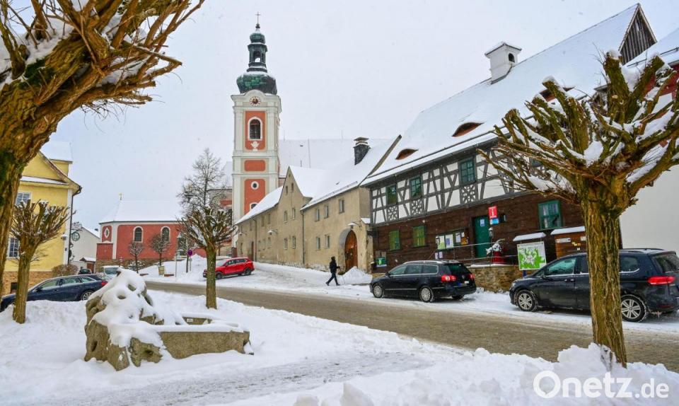 Tief verschneit zeigt sich der Marktplatz in Bad Neualbenreuth: Wo sich sonst viele Gäste in diesem Traumwinter tummeln würden, ist es durch die Corona-Pandemie ruhig geworden.