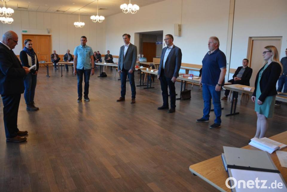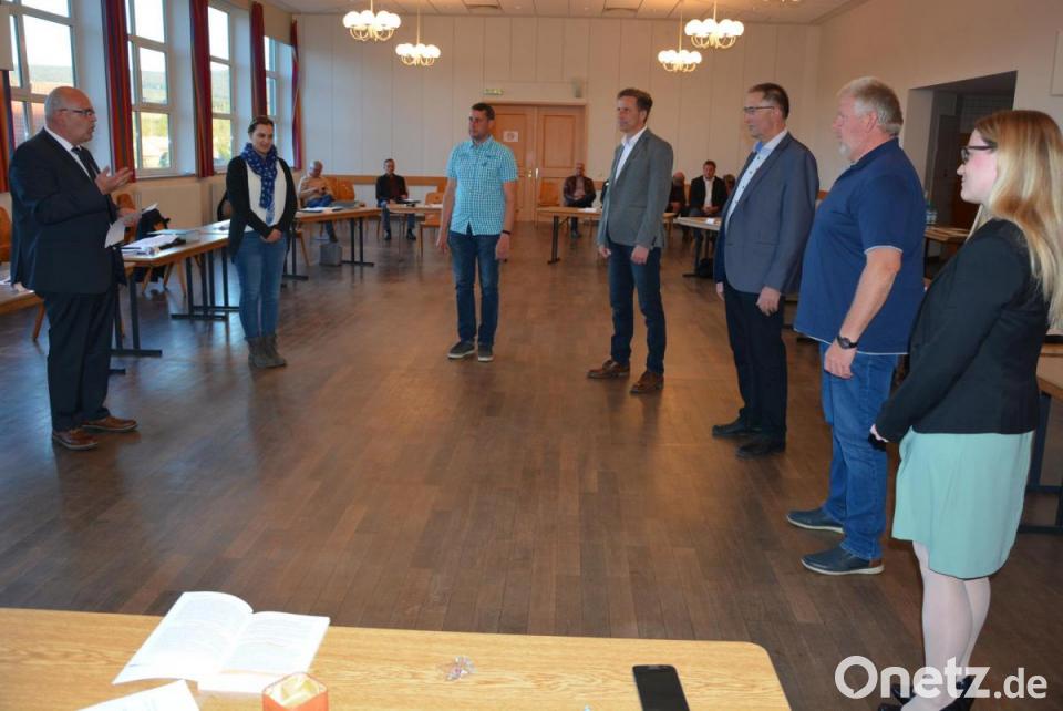 Danach wurden die neuen Marktratsmitglieder vereidigt: Werner Bauer, Franziska Maier, Alfons Schnurrer, Robert Ernstberger, Carina Keil und Michael Jaworeck (alle CSU-CWG).