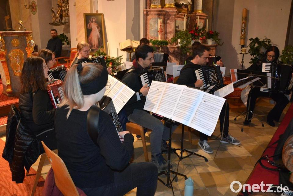 Das neunköpfige Akkordeonensemble der Kreismusikschule unter der Leitung von Viktoria Obermaier spielte „Christmas Pastorale“. Danach sang der Männergesangverein Bad Neualbenreuth unter der Leitung von Franz Danhauser „Aus einer schönen Rose“. Die Solisten Armin Pörner an der Orgel und Monika Werner an der Querflöte begleiteten die Aufführung. Zwischendurch erinnerte Kreisheimatpflegerin Monika Kunz mit ihren Texten an die Geburt Jesu im Stall von Bethlehem.