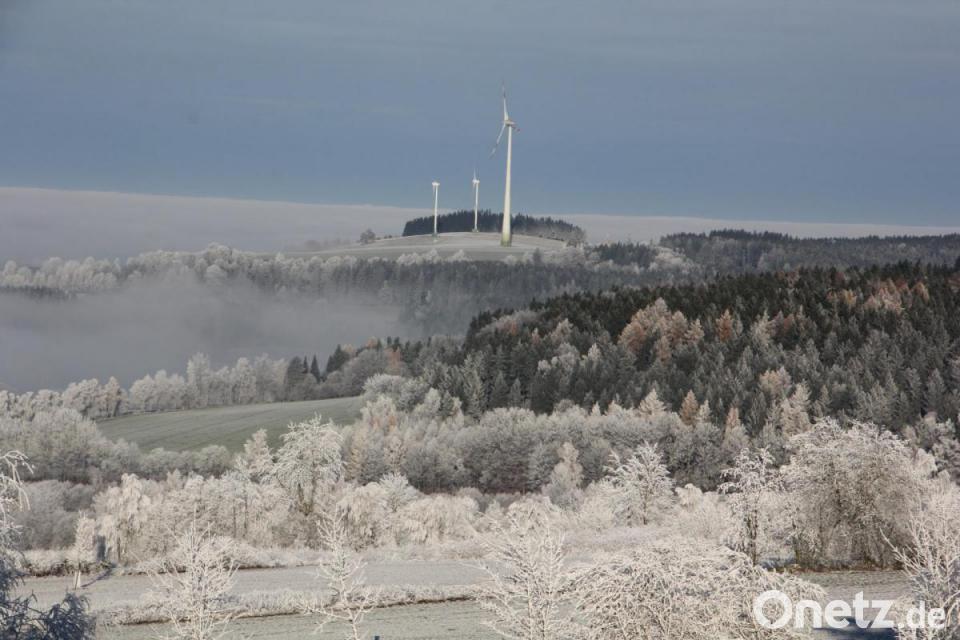 Die Minusgrade im ausklingenden November sorgen wieder für eine märchenhafte, eisige Winterlandschaft. Gerade auf den Höhen des Grenzkamms beschert der Raureif eine faszinierende Kulisse. Und dabei können sich die Windräder durchaus stimmig einfügen.