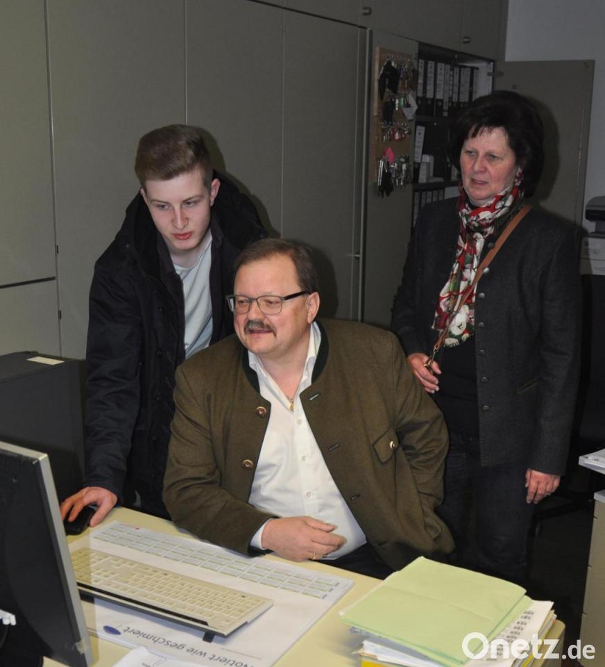 Kaum fünf Minuten nach Schließung der Wahllokale legten schon die Helfer im Rathaus das erste Ergebnis vor. Da lag sogar Hubert Häring noch an der Spitze, dann aber zog Alfred Stier davon, konnte aber den Sieg letztlich nicht absichern.