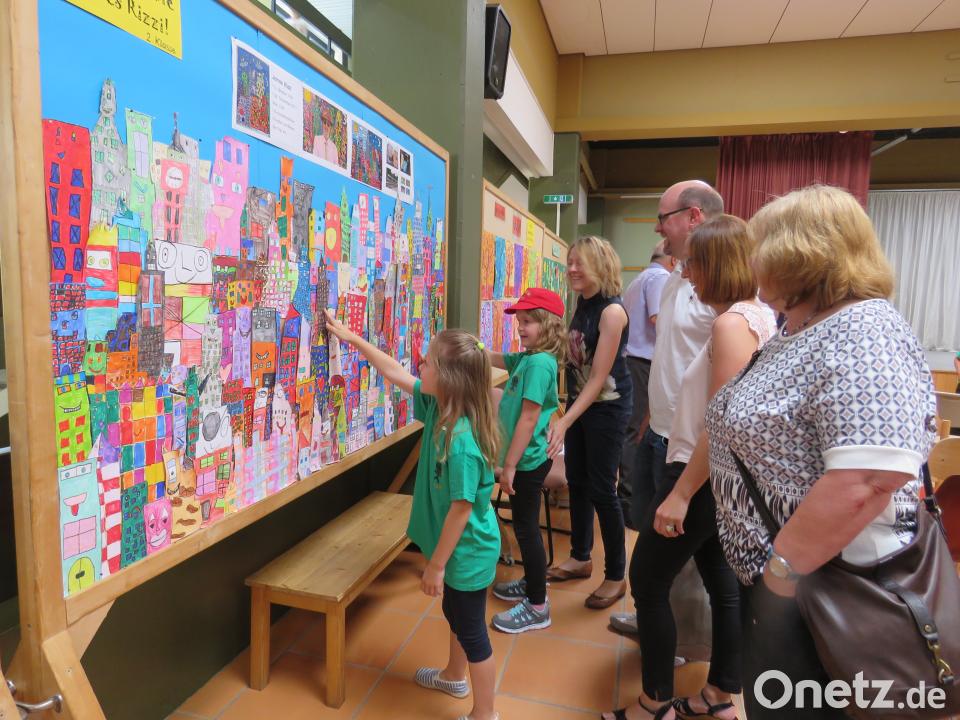 Für die Einweihung haben die Kinder im Kunstunterricht auch großflächig gezeichnet und zeigten das stolz ihren eltern.