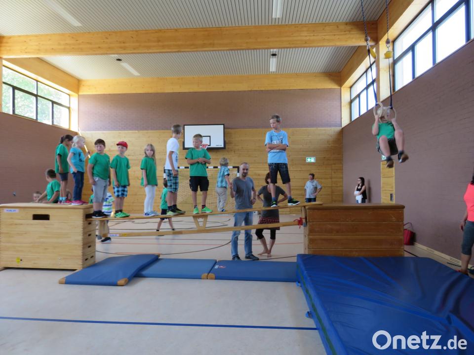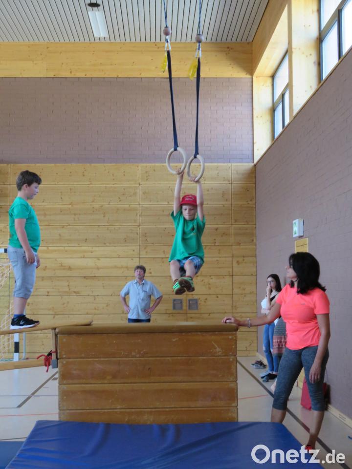 (ubb) Spiel und Spaß statt Büffeln: In der Grundschule gab es allen Grund zum Feiern. Neben der Einweihung des sanierten Gebäudes (wir berichteten) wurde Schulfest gefeiert. Nach den Festreden zur Einweihung ging's los. Alle Kinder wollten ihren Eltern unbedingt die neue Turnhalle und die Neuerungen zeigen. Der Elternbeirat hat die Verköstigung mit Grillfleisch, Bratwürsten und selbst gebackenen Kuchen übernommen. Bestens kam die Tombola an, ob der vielen tollen Preise. In einigen der Klassenzimmer konnte man unter Aufsicht der Lehrer Malen, Buttons herstellen oder an der digitalen Tafel spielen. Die Schüler hatten Spaß in der Turnhalle richtig toben zu dürfen. Dort konnten die sie einen Parcours absolvieren mit Klettern, an den Ringen schwingen oder Bockspringen. Während sich die Buben und Mädchen im Gebäude vergnügten, ließen es sich die Eltern draußen gut gehen. Laut Bürgermeister Alfred Stier soll weiter saniert werden. Neben Fußböden und Decken ist auch die Neugestaltung der Außenanlage vorgesehen.