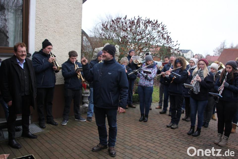 Nach dieser Überraschung ging es zu Alt-Bürgermeister Peter Hampel, dort wurde der "Deutschmeister Regiments-Marsch" gespielt. Als Belohnung gab es neben Hochprozentigem und Bier auch Süßigkeiten für die noch jüngeren "Grenzlandbuam und -mädels". Dritte Station war 3. Bürgermeister Alfred Wolf. Bereits zum 29. Mal spielten die "Grenzlandbuam" beim dienstältesten Stadtrat auf. "In Harmonie vereint" hieß der Musiktitel. Danach ging es zu SPD-Stadtrat Michael Wegener, ehe Hubert Häring an der Reihe war. Danach ging es mit mehreren Kleinbussen, die allesamt von Freiwilligen gesteuert wurden, auf die Dörfer. In Thanhausen wurden Bürgermeister und Ehrenmitglied Alfred Stier, sowie die Stadträte Christoph Weigl, Roland Heldwein, Georg Sollfrank und Ehrenbürger Michael Heldwein besucht, ehe Josef Hubmann in Kaltenmühle sowie Jürgen Fischer und Marco Donhauser aus Hohenthan folgten. In Schwarzenbach gab es ein Ständchen für Stadtpfarrer Johann Hofmann, ehe in Ödwaldhausen 2. Bürgermeister Michael Schedl und Stadtrat Stefan Schmidkonz musikalische Genüsse erhielten.