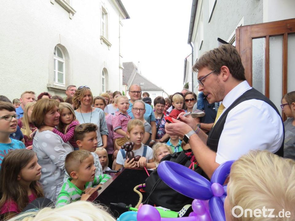 Viel braucht so ein Zauberer nicht, um Kinder glücklich zu machen. Spielkarten, ein Seil, Luftballons für Luftballon-Tiere, einen Ring und Geldscheine zauberte Knott aus dem Zauberkasten oder seiner Westentasche. Dieser Hokuspokus des geübten Magiers versetzte auch Erwachsene ins Staunen. Dicht gedrängt standen die Zuschauer gespannt vor Marcos Zaubertisch. "Dann zaubere ich mal", sagte Knott ganz entspannt und lässig.