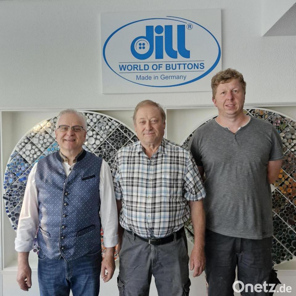 Die Knopffabrik Dill in Bärnau zeichnete im Rahmen ihrer Feierlichkeiten zum 100-jährigen Bestehen langjährige Mitarbeiter aus. Firmenchef Hans Dill bedankte sich bei Hans Bäuml für 40-jährige Treue zum Unternehmen sowie bei Christian Weigl für 25 Jahre Betriebszugehörigkeit.