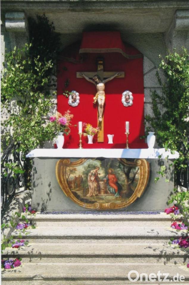 "Jahrzehnte lang steht ein wertvoller Schatz so in der Gegend rum, und keiner erkennt's", ist Kreisheimatpflegerin Ingrid Leser erstaunt. "Wir Bärnauer kennen das Bild von Fronleichnam", weiß Stadtarchivar Josef Rösch. Jedes Jahr schmückte das Gemälde den Fronleichnamsaltar am Rathaus. Dann wurde es wieder im Bauhof eingelagert. Bis es Leser wie Schuppen von den Augen fiel. Nach einer Fronleichnamsprozession schaute sie sich - wie immer - noch einmal alle vier Blumenteppiche an. Vor dem Altar am Rathaus blieb sie stehen und betrachtete das Gemälde eingehend. "Es war wie ein Geistesblitz! Die Farbführung, die Tiefenwirkung, die kahlen Bäume - alles typisch für Maurus Fuchs. Das ist ein Original", war sich Leser sicher.