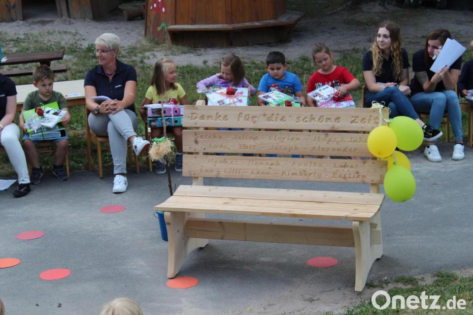 Doch die Tränen trockneten schnell, als die Kinder ihre Ordner stolz ihren Eltern und Großeltern präsentieren durften. Bevor das gemeinsame Picknick im Gruppengarten eröffnet wurde, hatte der Elternbeirat noch eine Überraschung für das Kinderhaus-Team in petto. Im Namen der "Schlauen Füchse" wurde der Kinderhaus-Leiterin Isabelle Grundler und der Stellvertreterin Patricia Kreuzer eine Bank aus Holz überreicht, beschriftete mit den Namen der Vorschulkinder.