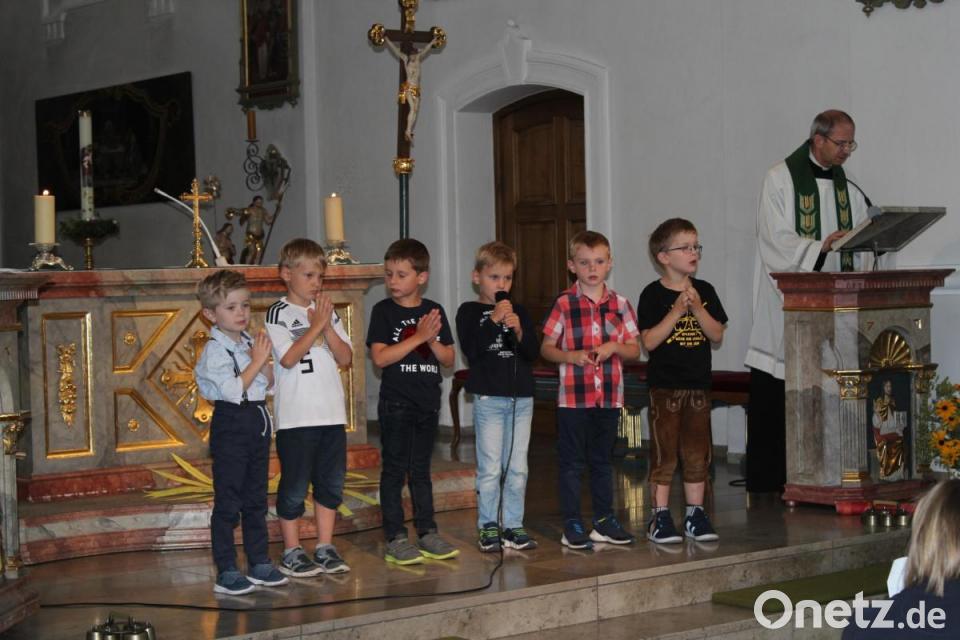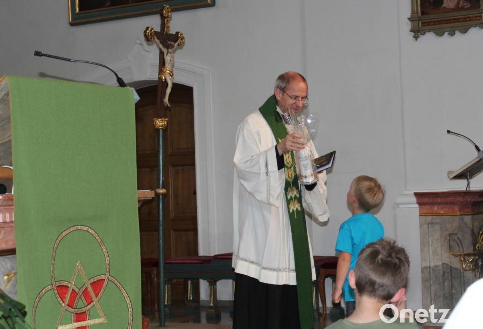 Als Pfarrer Johann Hofmann die Vorschulkinder mit dem Schlusssegen verabschiedete, hatten die noch eine Überraschung für ihn. Da auch er Abschied nimmt von der Pfarrei Bärnau, sangen ihm die angehenden Erstklässler ein Lied mit den Zeilen "Viel Glück und viel Segen". Als Zeichen der Dankbarkeit überreichte ihm ein Kind eine Kerze im Namen des gesamten Kinderhauses. Leiterin Isabelle Grundler bedankte sich bei dem Geistlichen für die Zusammenarbeit in den vergangenen Jahren.