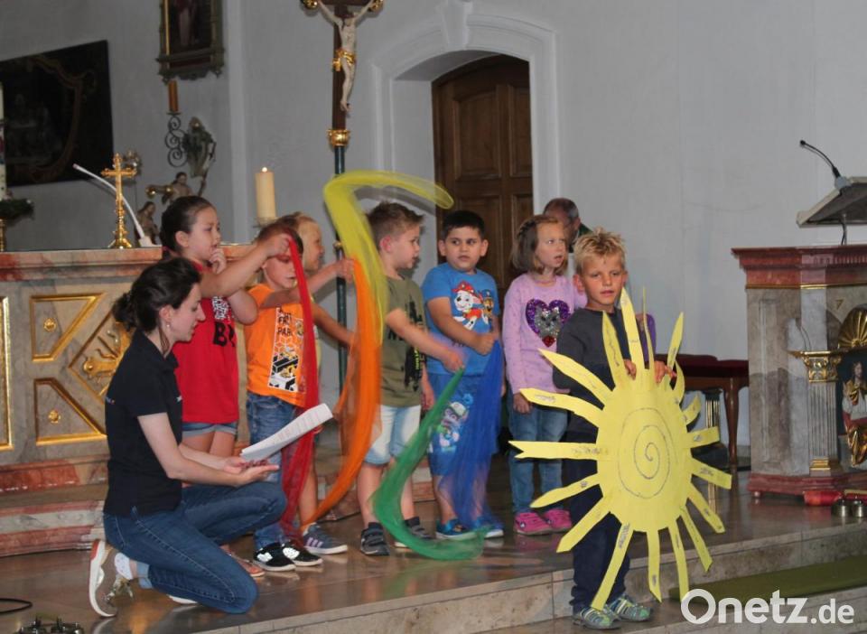 "Das Leben ist bunt wie ein Regenbogen" lautete das Motto der Abschlussfeier für die "Schlauen Füchse" - die Vorschulkinder des Kinderhauses. Bei einer Andacht in der Stadtpfarrkirche verabschiedete Pfarrer Johann Hofmann die Mädchen und Buben. Eröffnet wurde sie mit dem Lied "Wir feiern heut ein Fest".