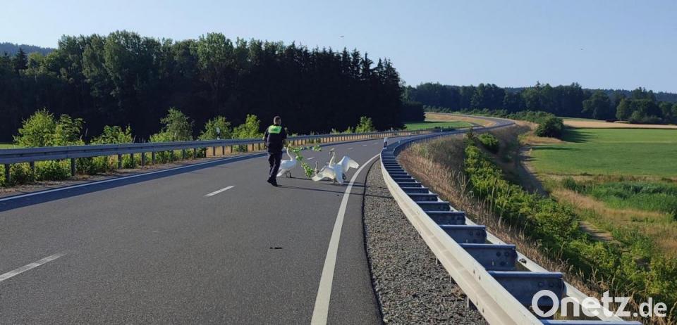 Zu einem tierischen Einsatz rückte eine Streife der Polizeiinspektion Tirschenreuth am Sonntagmorgen gegen 7.45 Uhr aus. Grund dafür war eine Mitteilung über mehrere Schwäne, welche auf der Staatsstraße auf Höhe von Bärnau unterwegs waren. "Offensichtlich hatte eine Schwanenfamilie samt mehreren Jungtieren das sonnige Wetter zum Anlass genommen, einen Spaziergang zu unternehmen", wie Polizeihauptkommissar Stefan Gründel in seinem Bericht schreibt.