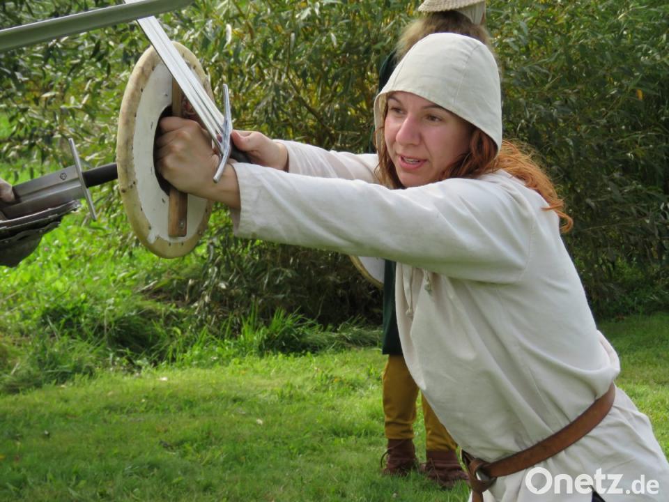 Auch Mia Fischer ist mit Begeisterung dabei. Sie ist die zweite Frau im Seminar, die sich für Kampfkunst interessiert. Die 29-jährige Kinderkrankenschwester aus Schwäbisch Gmünd gehört einer Schwertkampfgruppe in ihrer Heimat an und hat dort Warzecha kennengelernt. "Er hat mir Bärnau schmackhaft gemacht, und es ist wirklich großartig hier", schwärmt sie vom Seminar und dem Ambiente im Geschichtspark.