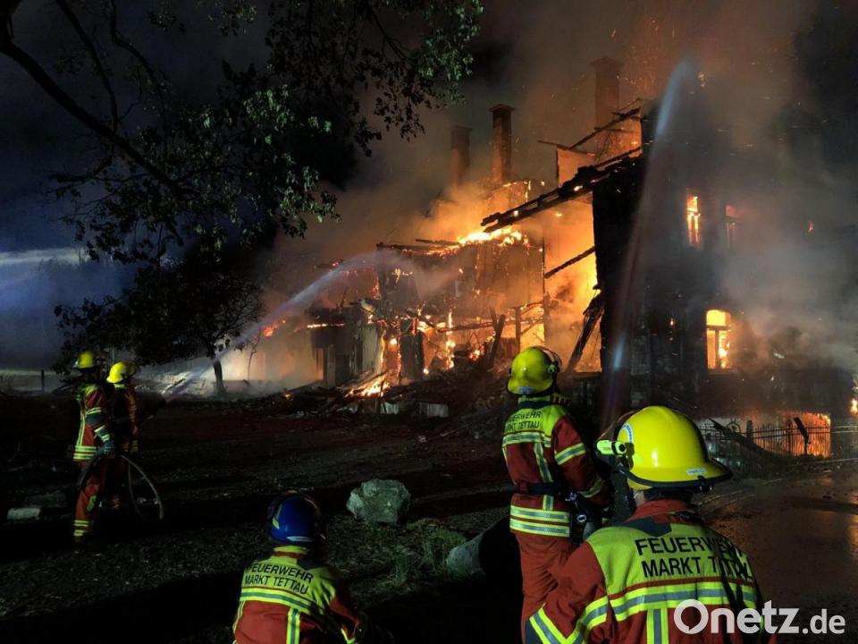 Eine Anwohnerin aus Tettau hat am Sonntagmorgen der Integrierten Leitstelle Coburg kurz nach 2 Uhr den Brand des Bauernhofes auf dem Wildberg gemeldet. Als die Beamten der Polizei Ludwigsstadt wenige Minuten später dort eintrafen, kämpften die Einsatzkräfte der Feuerwehr bereits gegen die Flammen. Eine Scheune war laut Meldung der Polizei Oberfranken bereits abgebrannt und das nebenstehende Wohnhaus stand in Flammen. Der Feuerwehr gelang es, das Feuer unter Kontrolle zu bringen und das Anwesen kontrolliert abbrennen zu lassen.