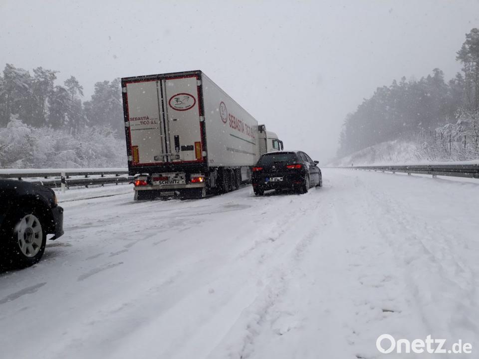 Auf den Oberpfälzer Autobahnen blieben Sattelschlepper und Kleinlaster, vor allem wenn es bergauf ging, reihenweise auf der schneebedeckten Fahrbahn liegen, auf der A6 sorgte das bei Nabburg für Staus und stockenden Verkehr.