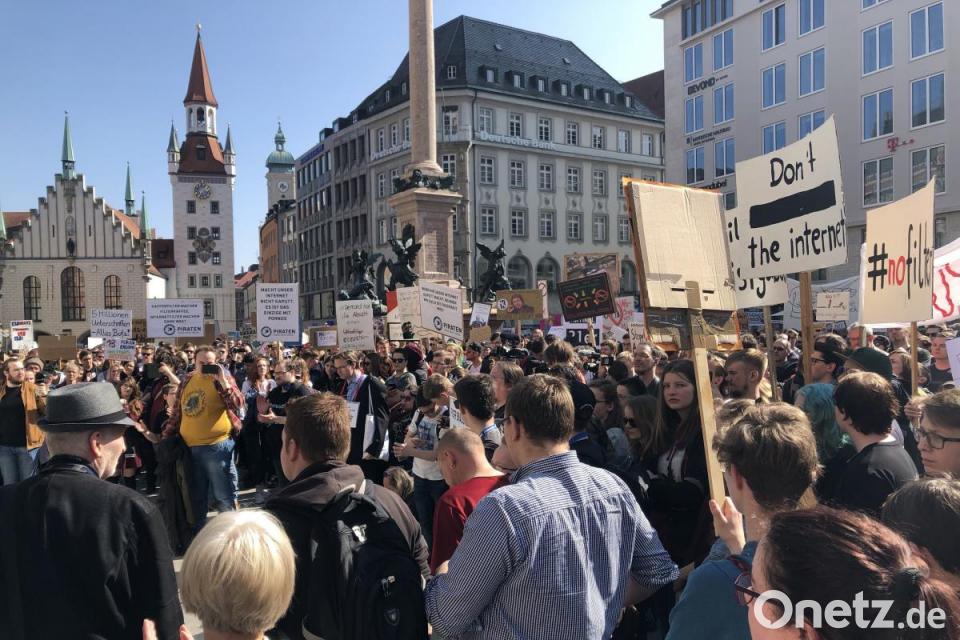 Vor allem junge Leute folgten am Samstag in der Landeshauptstadt dem europaweiten Protestaufruf eines breiten Aktionsbündnisses. Die Veranstalter sprachen von mehr als 50 000 Teilnehmern bei der Kundgebung unter dem Motto „Rette Dein Internet“. Die Polizei bestätigte eine Teilnehmerzahl von rund 40 000 Menschen. „Das Internet kann nur so frei sein, wie die Gesellschaft, die es nutzt“, sagte Thomas Lechner, Redner der Organisatoren. Nach der Auftaktkundgebung auf dem Marienplatz zogen die Demonstranten an der Staatskanzlei vorbei zum Odeonsplatz.
