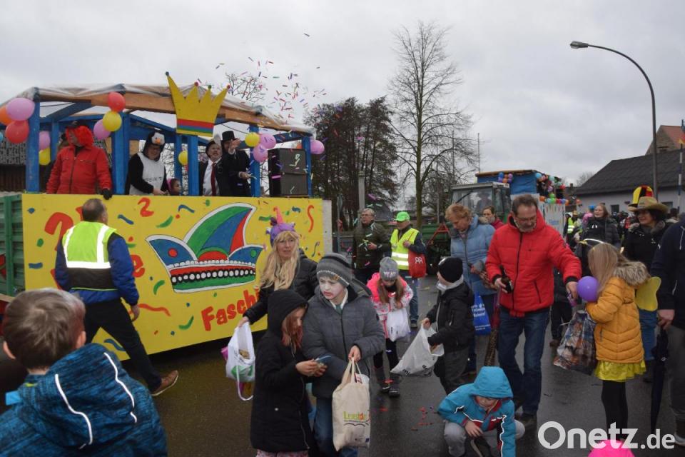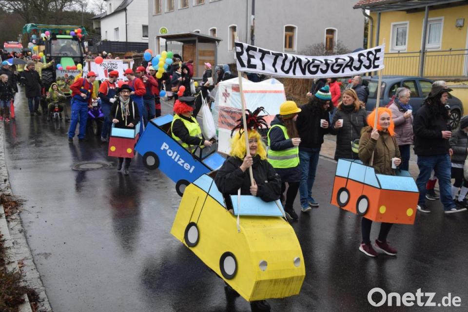 Eigentlicher Jubilar war die SPD, die den Narrenzug von Trebsau nach Bechtsrieth seit 25 Jahren organisiert. Sie führen auch den Gaudizug mit Initiator Alfred Wulfänger auf dem Wagen mit dem Jubiläumsmotto an. Dahinter folgen die Bechtsriether Vereine und als „fremder Farbtupfer“ die Kolpingjugend Schirmitz, die immer gut gelaunt mit ihrem Wagerl dabei sind. Die Siedler gehen ins aktuelle und bilden ihre Variante einer "Rettungsgasse", was ja auch in Realität schon fast notwendig gewesen wäre. Denn die Straße zum Feuerwehrhaus war dicht. Die Kinder sammelten auf der Straße mit Stofftaschen ausgestattet jede Menge Süßigkeiten. Wäre danach eine Kehrmaschine die Strecke abgefahren, die hätte wohl einen Zentner an Bonbons, Lutschern und Popcorn aufgesammelt. Nicht aber die hochprozentigen Drinks, Peter Schönmann agierte da als Straßenkellner und verteilte an die Erwachsenen vom SPD-Wagen aus fläschchenweise Obstler und kleine Klopfer. Die Wagenburg zur Fete musste vom gesperrten Buswendeplatz zum Feuerwehrhaus vorverlegt werden, war der Stimmung nicht schadete. Hier herrschte weiter Stimmung und die verlegte sich dann in die Turnhalle, wo die Feuerwehr den Faschingskehraus nachfolgen ließ.