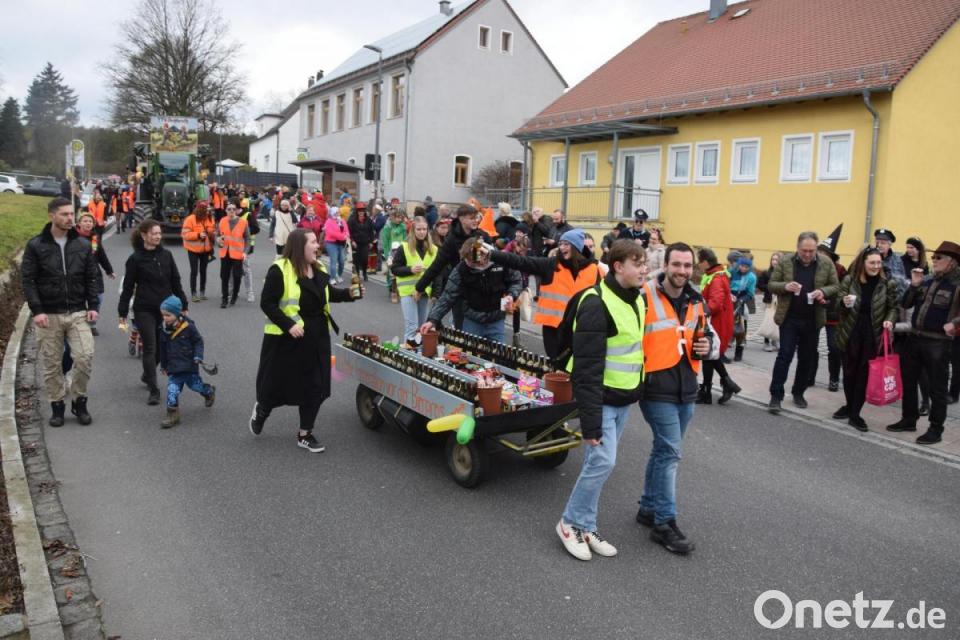 Der Turnverein feierte fröhlich auf seinem Wagen. Die Feuerwehr hatte ihr Gefährt in Richtung 140-jähriges Jubiläum dekoriert. Dazwischen wie immer der Farbtupfer: die Kolpingjugend aus Schirmitz mit ihrem handgezogenen Wagen als „Letzte Generation Bierpreis“. Die Batterie an Flaschen sollte signalisieren, dass es um den Gerstensaft nicht gut steht.