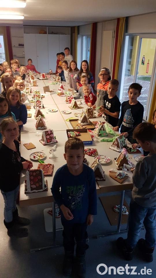 Mit Rita Spranger, Katrin Leinert, Jonja Lehner, Andrea Bücherl und Dagmar Gebhardt vom Förderverein verzierten die Kinder im Pfarrheim die Lebkuchenherzen und Hexenhäuschen mit farbigem Zuckerschaum, Gummibärchen, Smarties, bunten Streusel und weiteren Süßigkeiten. Auf die Häuschen setzten sie Hexe, einen schwarzen Kater sowie Hänsel und Gretel.