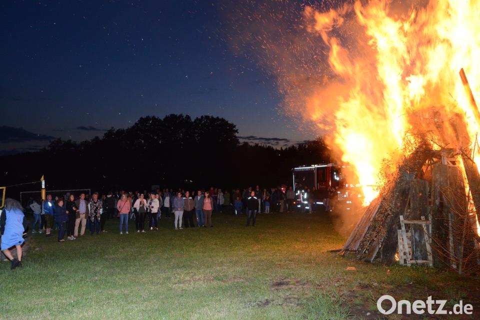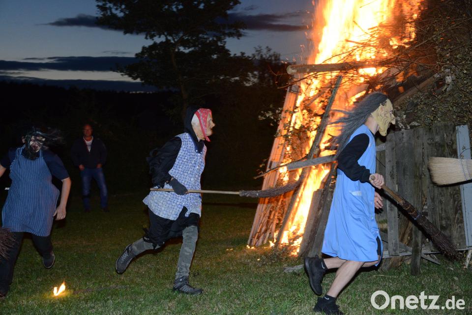 Es war für die Besucher des Johannisfeuers des TV Bechtsrieth das Zeichen sich auf den Weg zum Johannisfeuer in sicherer Entfernung zu machen. Dann tauchten vier „Hexen“ mit Besen und Fackeln auf, die das Feuer entzündeten. Der sauber aufgeschlichtete Holzstoß verbreitete in der Kühle der Nacht angenehme Wärme. Die Freiwillige Feuerwehr Bechtsrieth begleitete rein vorsorglich das Feuer. Dann hieß es für die Besucher wieder „zurück zum Zelt und Weiterfeiern“.
