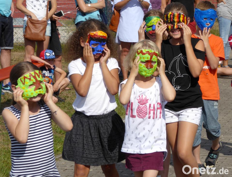 (fsb) Gekonnt präsentierten die Grundschüler ihren Eltern und den Gästen, was sie alles gestaltet, geübt und geschaffen hatten. Zu Beginn begrüßten Anna und Laurenz der 3./4. Klasse die Besucher und stellten ihnen die erste von vier kleinen Aufführungen vor: den selbst gedichteten „Cap-Song“ unter Leitung von Jessica Röß. Danach gab es durch 40 Kinder einen Augenschmaus. Sie zeigten in einer Maskenschau, was sie bei Katharina Guggenmos und Katja Meidenbauer mit ein bisschen Wasser, Gips und Farbe gezaubert hatten: kreative Tier- und Fantasiemasken in knalligen Farben. Die zwei Gruppen der Arbeitsgemeinschaft Tschechisch hatten fleißig mit ihrer Lehrerin Jarmila Posl geübt. Sie sangen in dieser Sprache das Lied vom „Häschen in der Grube“ und stellten Tiere vor: eine Kuh, eine Katze, einen Hund, eine Schlange, einen Fisch und einen Frosch. Schließlich bewies die dritte Klasse, die Jessica Röß trainiert hatte, wie gut sie jonglieren und Pyramiden bauen konnte.