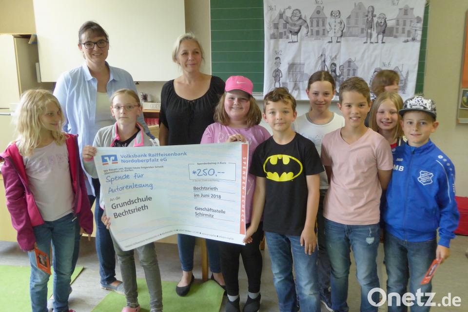Die zehnjährige Lina muss mit ihren Eltern von ihrem geliebten Zuhause in Hannover nach Würgelsheim an der Graus ziehen. Die neue Adresse "Schurkenstraße" lässt nichts Gutes ahnen. Die Nachbarn, dargestellt auf einem großen Bild an der Tafel, sind durchgeknallte, schräge oder auch bedrohliche Gestalten. Zum Glück freundet sich Lina mit dem unerschrockenen Wendelin an. Gemeinsam wollen sie dem Spuk ein Ende bereiten und versuchen, hinter das Geheimnis eines Lauschapparats zu kommen. Diesen hatte die Schriftstellerin mitgebracht und servierte eine Kostprobe. Im Anschluss an die beiden Lesungen stellten die jungen Zuhörer viele Fragen an Haas, die seit 16 Jahren mittlerweile 23 Bücher geschrieben hat. Rektorin Katja Meidenbauer dankte und präsentierte stolz einen Spendenscheck: Beide Schulen unterstützte die Volksbank Raiffeisenbank Nordoberpfalz für dieses Projekt mit je 250 Euro.