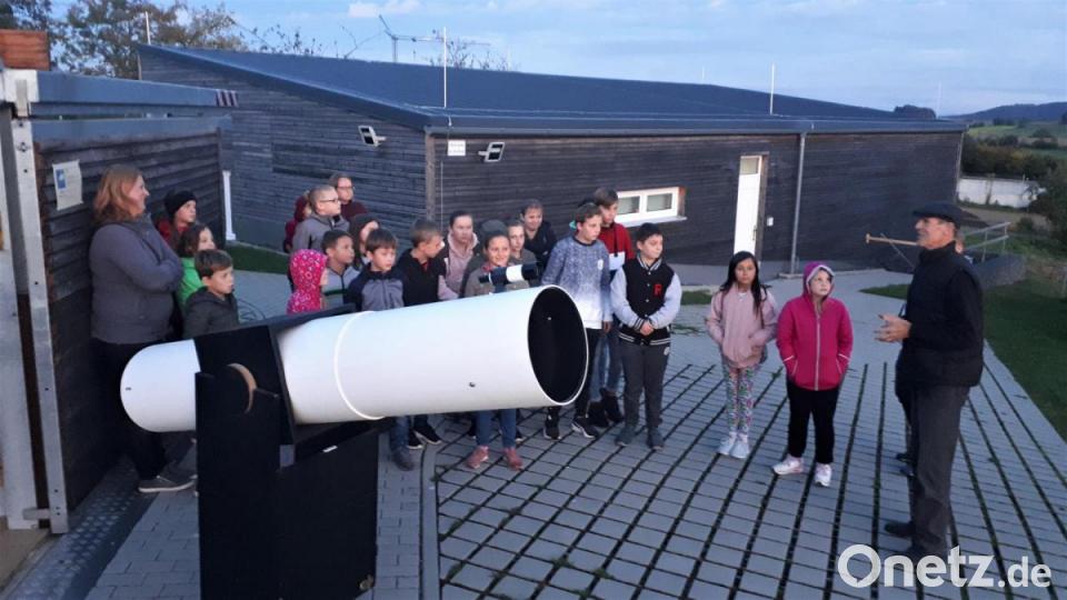 Karin Bauer, Michaela Völkl, Nadine Bausch, Stefan Lehner, Christian Kaube und Sonja Bodensteiner waren mit den 21 Kindern zur Sternwarte gefahren, wo sie von Johann Köppl empfangen wurden. Er zeigte den Kindern, wie man in die beiden großen Teleskope sieht. Besonders beeindruckend war es, bei dem Mond die einzelnen Krater zu sehen. Bei dem anderen Teleskop konnte man den Saturn mit dem Ring betrachten.