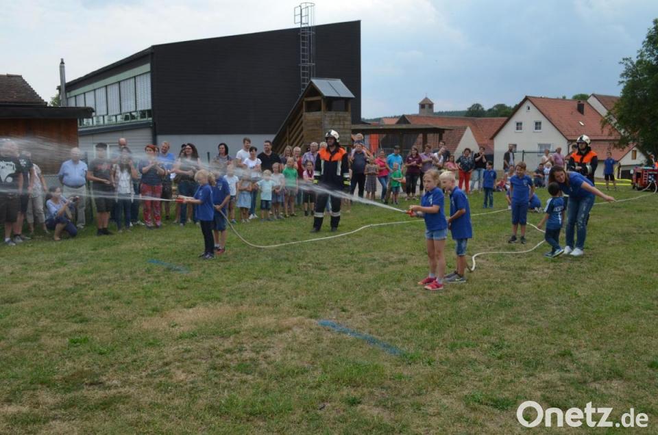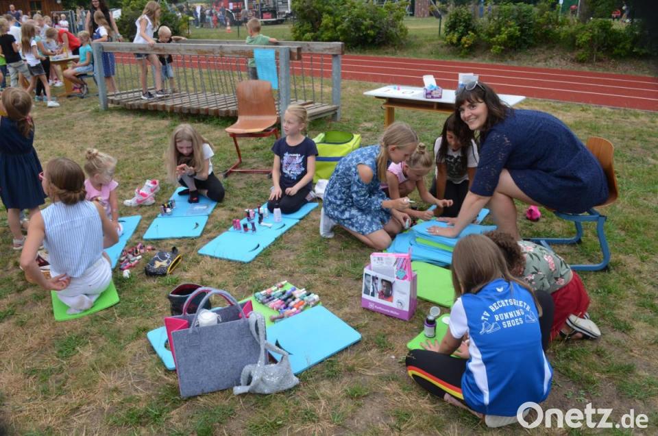 Das weitläufige Schulgelände war ein riesiger Tummelplatz. Mit dem Tanz „Summer in the City of Bechtsrieth“ eröffneten die Schüler vor über 200 Eltern und Gästen das Schulfest. Rektorin Meidenbauer bezeichnete das ehrenamtliche Engagement besonders wichtig in der Gesellschaft. Die Mitwirkung der Vereine sei beispielhaft und das Schulfest so auch ein „Tag der Verein“. Den Kindern bieten sich viele Entfaltungs- und Lernmöglichkeiten. Die Schule pflegt eine enge Kooperation zu den Vereinen, zum Beispiel mit der Feuerwehr oder dem Obst- und Gartenbauverein. Die Schulleiterin gab auch Infos zum nächsten Schuljahr. Mit der Info, dass zwei erste Klassen eingerichtet werden, erntete Meidenbauer Riesenapplaus. Neu aufgestellt wird derzeit die Mittagsbetreuung. Kaum war der Anfangsteil mit Tänzen und Liedern (auch tschechisch) vorbei, machten sich die Kinder auf den Weg zu den zwölf Stationen. Ausgefallenes, Geschick erforderndes und Action waren dabei, ja an einer Station wurden der Rektorin von den Kindern sogar die Fingernägel lackiert. Aufsehen erregten die Löschis der Feuerwehr, die mit ihrem kleinen Elektrofeuerwehrauto vorfuhren und binnen kurzer Zeit einen Löschaufbau vollzogen. Überall gab es einen Stempel. Wer am Schluss alle zwölf hatte, bekam einen Hausaufgabengutschein.