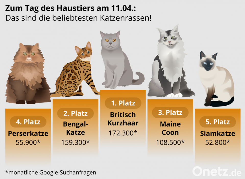 - Auf Platz 1: Die Britisch Kurzhaar. Mit 172.300 Google-Suchanfragen pro Monat führt die kraftvolle und eher ruhige Katze das Ranking an.