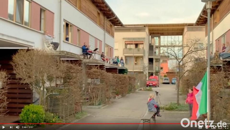 Die Bewohner einer Reihenhaussiedlung in Bamberg singen für Italiener. die von der Coronakrise besonders betroffen sind. "Bella Ciao" klingt es von den Balkonen. Das Video der Aktion hat bereits über 400.000 Aufrufe (Stand 19. März) bei Youtube. In einer kurzen Ansprache erklärt ein Bewohner die Motivation: Solidarität. Dann startet „das Lied der Freiheit per Exzellenz“.