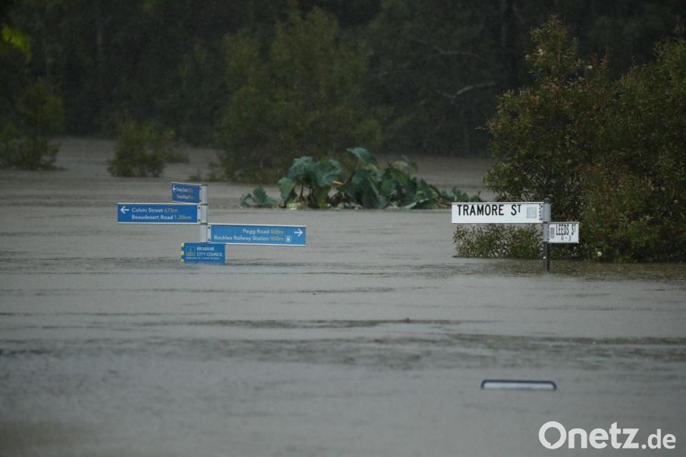 Überschwemmte Straßen in Rocklea in Australien. Seit Tagen anhaltende heftige Regenfälle haben die Pegelstände vielerorts im Nordosten des Landes weiter in die Höhe getrieben.