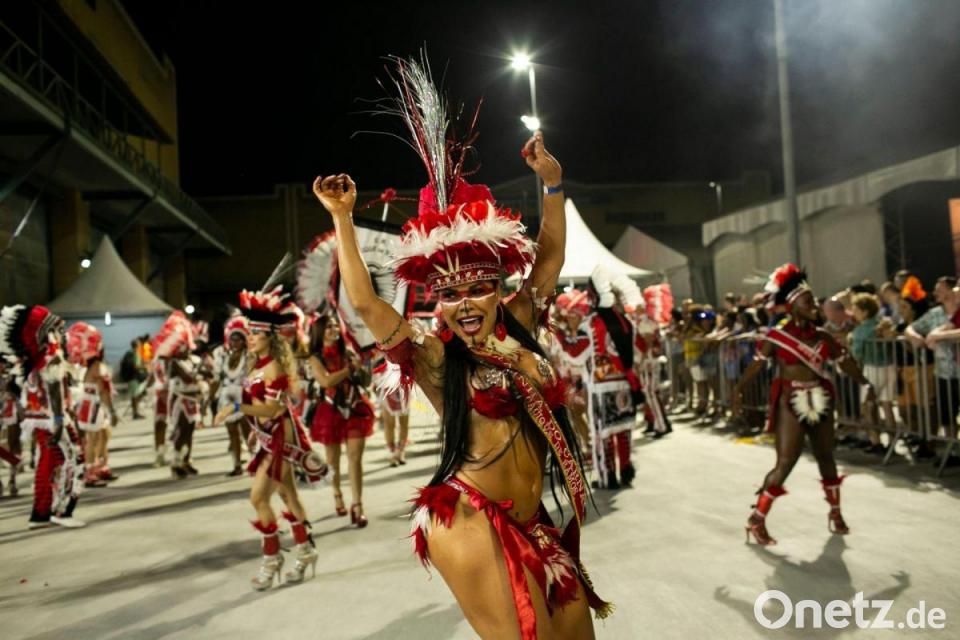 Inoffizieller Karneval: Tänzer und Tänzerinnen der Sambaschule Cacique de Ramos während einer Vorschau in Rio de Janeiro auf die Paraden der Sambaschulen im April dieses Jahres.