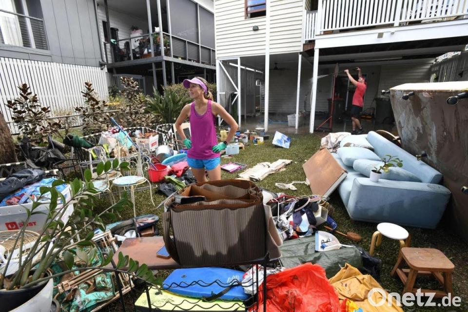 Wegen der Überschwemmungen in Australien müssen viele Bewohner ihre Häuser aufräumen. Ein Mann wird noch immer vermisst, neun Menschen sind tot und mehr als 1100 befinden sich in Evakuierungszentren.