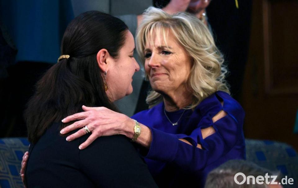 US-First Lady Jill Biden begrüßt die ukrainische Botschafterin Oksana Markarova zur Sitzung des Kongresses im Kapitol.