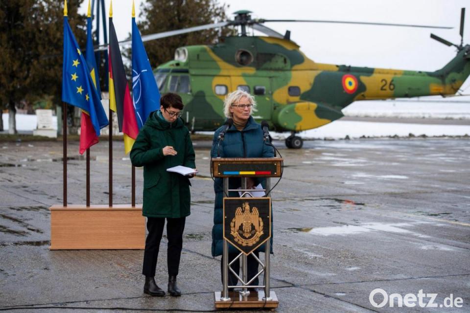 Die deutsche Bundesverteidigungsministerin Christine Lambrecht spricht bei einem Besuch der deutschen Truppen, die in Rumänien stationiert sind.