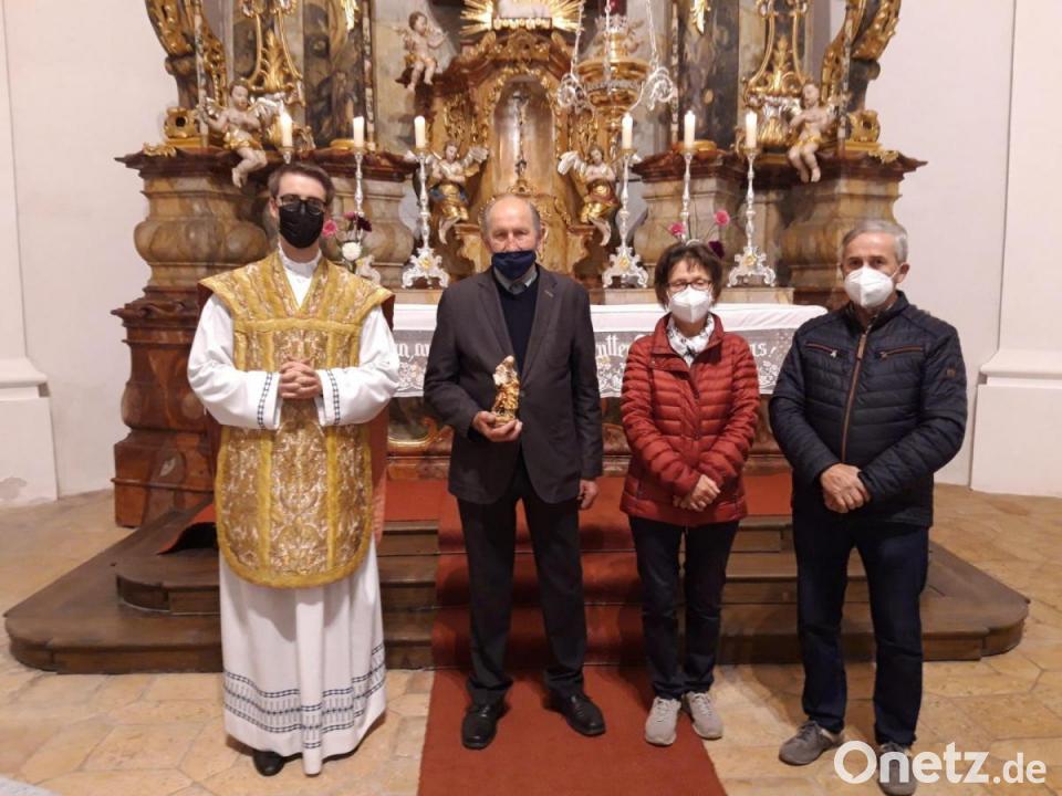 "Wenn wir heute auf Ihr langes Wirken dankbar zurückblicken, dürfen wir sehen und feststellen, dass es Menschen gibt, die sich mit Herzblut und Eifer für die pfarrliche Gemeinschaft engagieren, damit gut in die Zukunft gegangen werden kann", so der Altenstädter Pfarrer. Als Geschenk überreichte er ihm eine handgeschnitzte, mit Ölfarben bemalte Mutter-Anna-Figur.