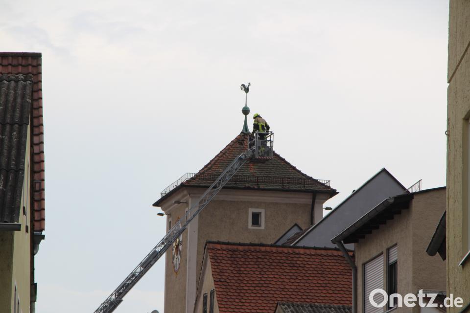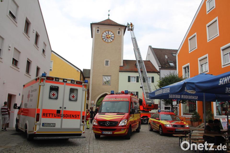 Mehrere Sanitäter alarmierten die Feuerwehr, nachdem sie durch eine ohrenbetäubenden Knall auf den Blitzeinschlag im Altmühltor aufmerksam wurden. Einige Passanten gingen bei dem Knall in die Knie, da für mehrere Sekunden nicht zuzuordnen war, woher der Knall kam und was genau passiert war, schilderten Augenzeugen.