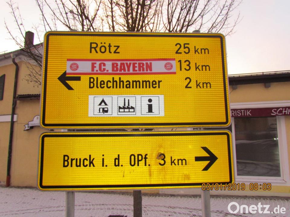 Noch unbekannte Täter beklebten an der Einmündung der Schwandorfer Straße in den Rathausplatz zum Jahreswechsel mehrere Verkehrszeichen mit Fan-Aufklebern des FC Bayern München. Die Aufkleber können nicht mehr einfach abgenommen werden. Durch die Reinigung wird die reflektierende Oberfläche extrem beschädigt. Dem Freistaat Bayern (Straßenmeisterei) ist deshalb durch diesen „Lausbuben-Streich“ ein Schaden in Höhe von etwa 2000 Euro entstanden. Die Aufkleber befanden sich in mehr als zwei Metern Höhe, so dass eine Steighilfe benutzt werden musste und die Tat durchaus aufgefallen sein könnte. Die Polizei Neunburg vorm Wald ermittelt und bittet um Hinweise möglicher Zeugen unter der Telefonnummer 09672/9202-0.