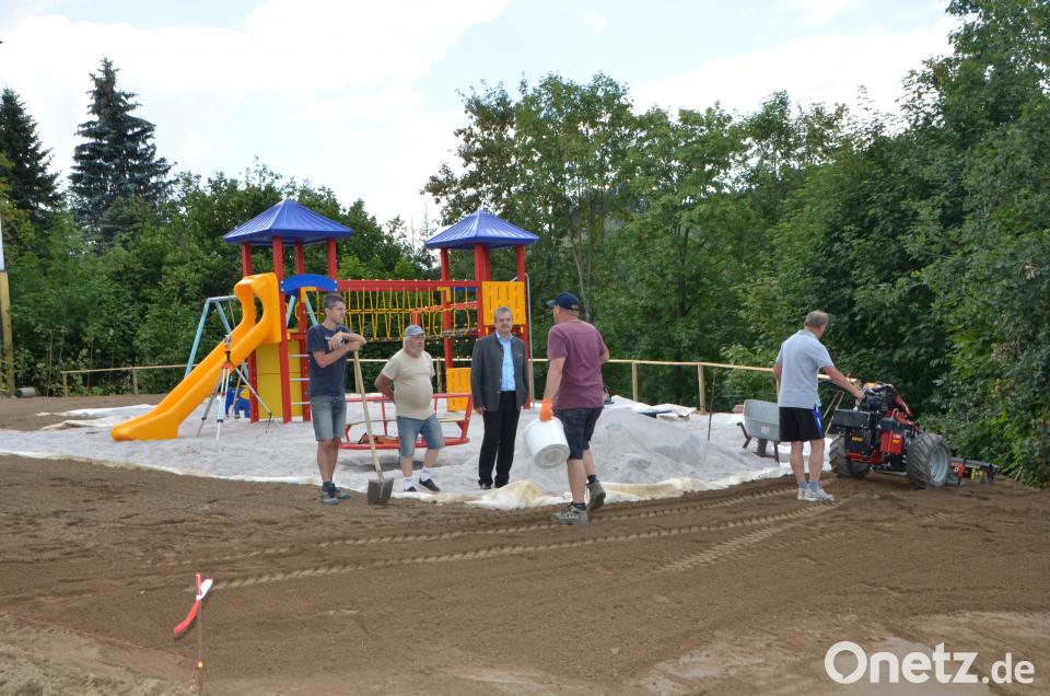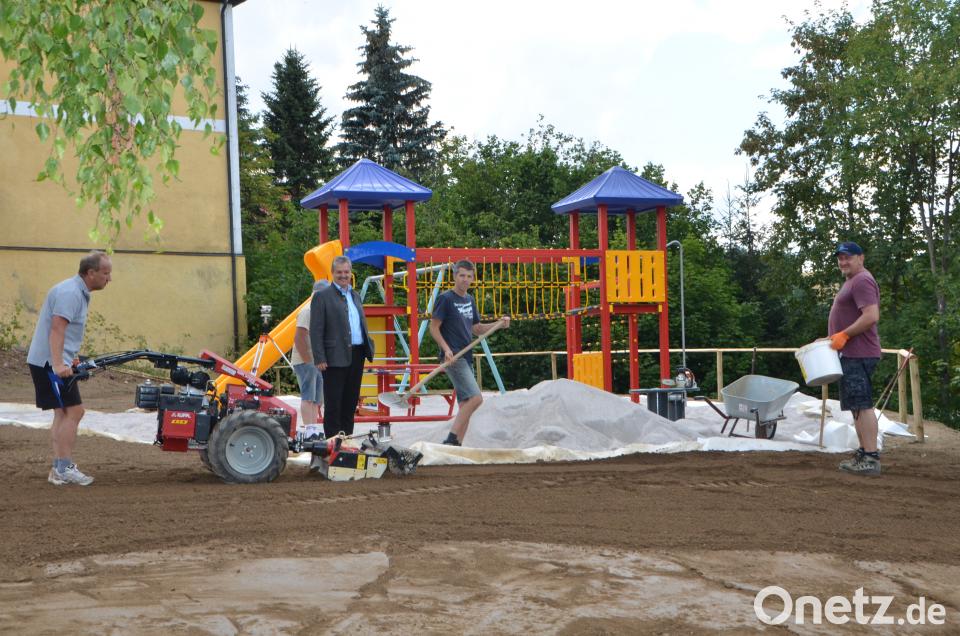 Einen großen Anteil an den freiwillig geleisteten Stunden nahm zu Beginn der Abbau und die Geländeanpassung in Anspruch, berichtete Wiesent. Natürlich soll auch noch eine neue Sitzgruppe aufgestellt werden, damit sich Eltern bequem niederlassen können. Günter Schlagenhaufer aus Böhmischbruck lieh den Arbeitern seinen Lader für die Erdarbeiten aus. Vom Spatwerk "Silbergrube" steuerte die Firma Schmidt aus Waidhaus 75 Tonnen feinsten Quarzsand dazu, der unter den Spielgeräten nicht nur zum Sandspielen, sondern auch zum Schutz der spielenden Kinder eingefüllt und sogar kostenlos überlassen und geliefert wurde. Insgesamt zählte Wiesent 175 Stunden an freiwilliger Leistung inklusive der Organisation allein für die Feuerwehr zusammen. Hauptsächlich erbrachten Wiesent und Seegerer diese Ehrenamtsstunden. Für den Obst- und Gartenbauverein schrieben sich 32 Stunden in die Helferliste ein. 17 Stunden waren es für die Krieger- und Soldatenkameradschaft und 20 Stunden halfen Kirchenverwaltungsmitglieder an der Neustrukturierung mit. Mit einem Zaunprovisorium grenzten die Helfer den Spielplatz ein. Die Stadt übernahm die Kosten für die neuen Spielgeräte und das Baumaterial, die sich auf rund 15 000 Euro belaufen.
