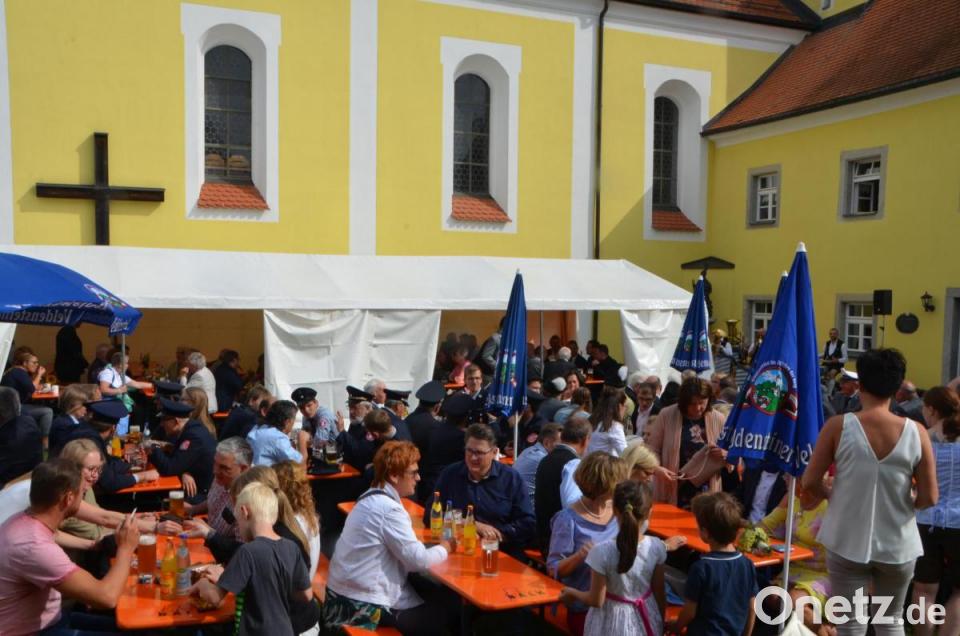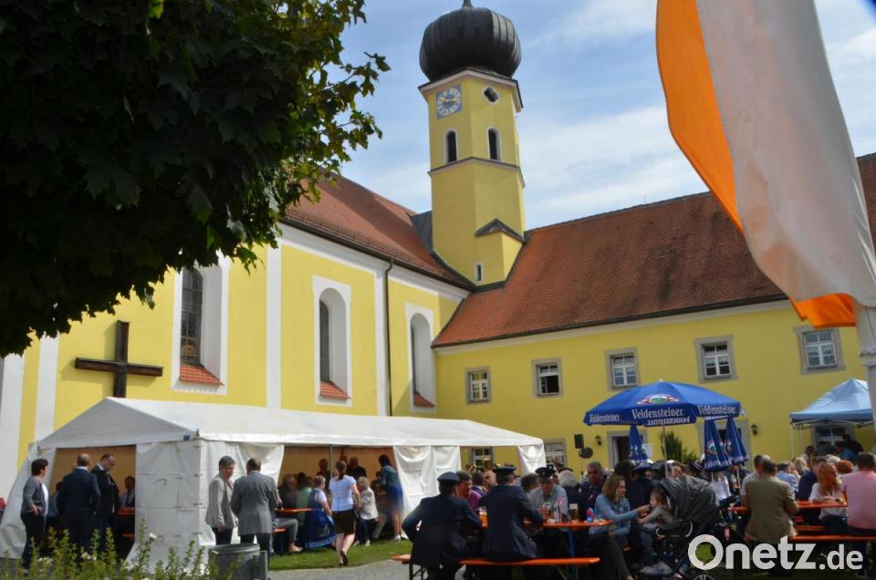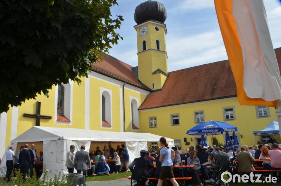Kirchenpfleger Johann Kurzka fühlte sich angesichts der vielen Teilnehmer an frühere Zeiten erinnert, als die Kirchen voll besetzt waren. Er lud die Gäste gleich im Anschluss zur weltlichen Feier auf den Kirchplatz ein, wo sich die Besucher zum Frühschoppen im Schatten des Kirchenensembles niederließen. Zur Mittagszeit tischten die Organisatoren Schnitzel mit Kartoffelsalat auf, und auch die Kuchentheke im Pfarrsaal präsentierte sich gut und abwechslungsreich gefüllt den Schleckermäulern.