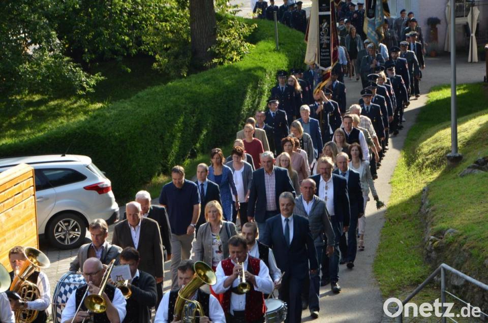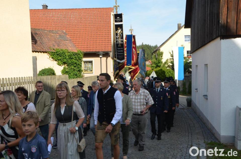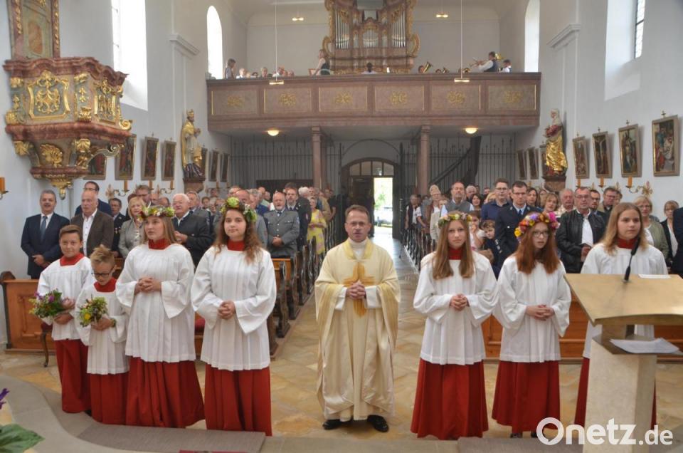 Die Anfahrt zum Patrozinium gestaltete sich aber etwas aufregend für Dekan Alexander Hösl, der durch ein dringendes Telefonat in zeitliche Bredouille geriet, wie er anführte. Noch dazu fuhr auf der Kreisstraße vor ihm seelenruhig Bürgermeister Andreas Wutzlhofer, um die schöne Landschaft zu genießen. Doch das Stadtoberhaupt erkannte die drängende Situation des Pfarrers und ließ ihn sogleich überholen. Deshalb zog der Geistliche zu Beginn des Gottesdienstes aus dieser Situation Parallelen zu Maria, die ebenfalls das Gespür für ihren Sohn entwickelte, den Weg frei zu machen, damit er bei den Menschen ankommen konnte. Fahnenabordnungen der Feuerwehr und der Krieger- und Soldatenkameradschaft aus Böhmischbruck, die St.-Georg-Schützen, Feuerwehr, Soldaten- und Kriegerverein und Katholische Landjugend aus Etzgersrieth, Feuerwehr und Soldaten- und Kriegerverein aus Kleinschwand reihten sich um den Altar auf. Der Kirchenchor unter Leitung von Daniela Bock und Julia Duschinger an der Orgel begleiteten den Gottesdienst mit der Blaskapelle.