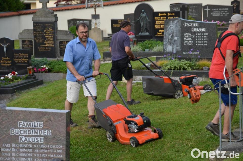 Bemerkenswert ist, dass Markus Duschinger und Lukas Götz mit gerade mal 14 Jahren schon zupackten und bis heute beim Helferstamm dabei sind. Kein Unkraut bleibt zwischen den Gräbern und vor dem Leichenhaus stehen. Es wird gekehrt, gerecht und gemäht, bis alles picobello sauber ist. Noch dazu alles ehrenamtlich. „Es macht uns allen ganz viel Spaß. Uns da einzubringen, ist Ehrensache“, wiegeln die Helfer etwaiges Lob ab.