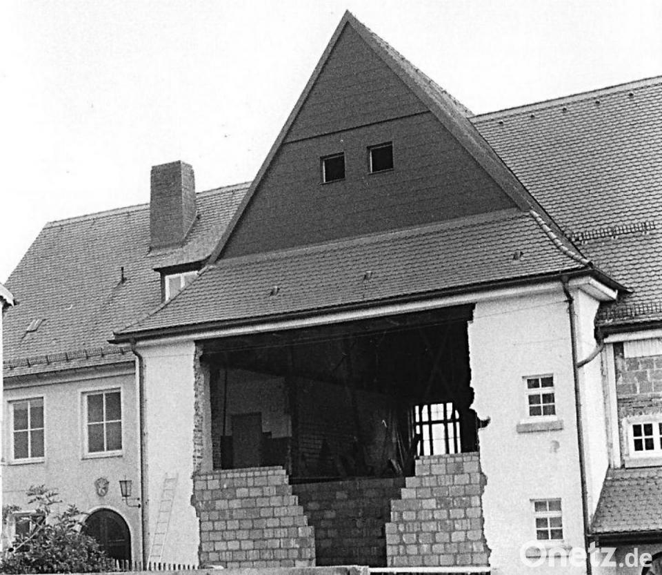 Von den ersten Entwürfen Deschermeiers war da nicht mehr viel übrig. Ursprünglich war die Bühne im ehemaligen Wohntrakt geplant, wurde dann aber doch in einem Anbau an der Ostseite untergebracht. Behindertengerecht sollte gebaut werden, weshalb ein Aufzug eingeplant wurde. Man hoffte, im Oktober 1990 den Mehrzwecksaal einweihen zu können. Doch daraus wurde nichts.