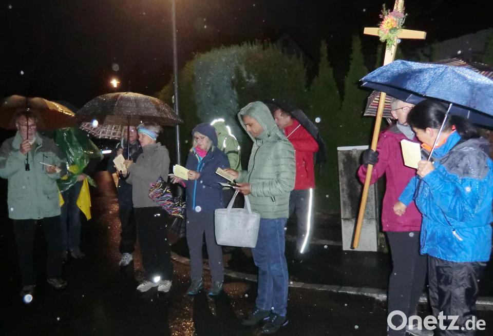 Was es bedeutet, „alle Mühen und Schmerzen der Wallfahrt aufzuopfern“, wie es in einem Gebet bei Aufbruch hieß, bekamen die Fußwallfahrer aus Brand und Umgebung vor Kurzem schnell zu spüren: Neun Stunden zu laufen, davon acht im teils heftigen Regen, war kein Vergnügen. Dichte Wolken hatten beim Abmarsch an der Kirche noch wenig Tageslicht durchgelassen, als sich die Gläubigen eingehüllt in wasserdichte Anoraks und eingewickelt in Plastikfolien auf den Weg nach Oberölbühl machten. Rudi Ernstberger war mit dem Bus der Feuerwehr Fuhrmannsreuth vorgefahren, um die Wallfahrer auf dem rund 40 Kilometer weiten Weg zu begleiten. Wolfgang Moller hatte sich mit Sicherheitskleidung und Kelle ausgestattet, um für unfallfreies Überqueren der Straßen zu sorgen. Das Wallfahrerkreuz hatte Mesnerin Paula König liebevoll geschmückt. In Oberölbühl, wo sich noch weitere Gläubige anschlossen, spendete Pater Joy den Wallfahrersegen. Am Seehausparkplatz kamen noch weitere Teilnehmer dazu. Texte lesen war vorerst nicht möglich: Schirm tragen, Buch halten und noch dazu auf Wege achten gelangen in der Dunkelheit noch nicht. Corona, gefährdeter Weltfrieden, Klimakatastrophe und persönliche Anliegen sowie die traditionellen Rosenkränze waren Inhalt der Gebete. Bald war Gefrees zum Greifen nahe. Das Ziel war zu sehen: Im Sportheim in Streitau findet die Wallfahrergruppe immer freundliche Aufnahme und Essen zur Stärkung. Der Sonnenschein erwies sich in dieser halben Stunde als großer Segen. Nachdem sich hier noch einige Brander angeschlossen hatten, wurden nun 25 Teilnehmer gezählt. Der Zug setzte sich nach der Pause in Bewegung, um die letzte Etappe von zehn Kilometern in Angriff zu nehmen. Bei der Bewältigung der beiden großen Berge setzte ein Sturm ein. Der Turm der Basilika tauchte bald in der Ferne auf und schnell war die Kirche erreicht. Das Kreuz übernahm Leni Schmidt: Die jüngste Teilnehmerin begleitete die Fußwallfahrer in die Kirche. Dort hatten sich bereits viele Brander eingefunden, die mit Bus oder Auto gekommen waren, um den Wallfahrer-Gottesdienst mitzufeiern.