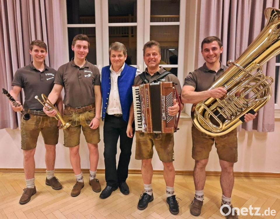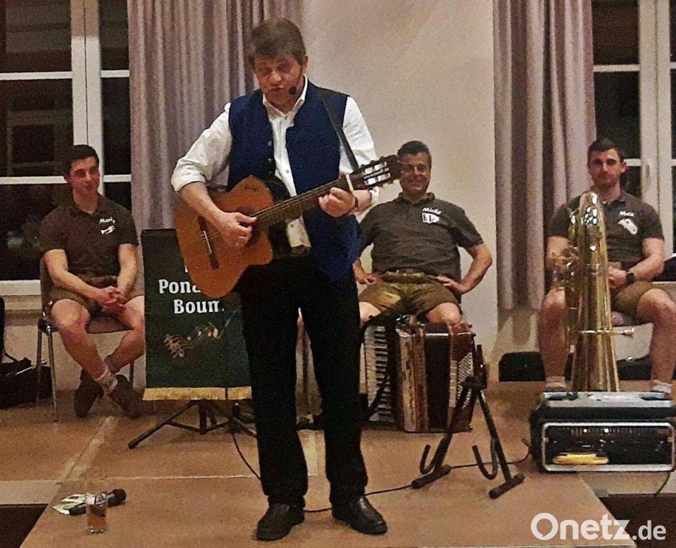 Dann kam der Hauptakteur des Abends: Bevor „Bäff“ den ersten Satz sprach oder das erste Lied spielte, hatte er schon mit Blicken die Umgebung „abgegrast“, beim Aufbau der Technik seine Opfer auserkoren, die er in der Gstanzl-Runde aussang. Er machte die Runde, fand spontan für jedes Opfer einen lustigen Reim, war dabei immer freundlich und ließ niemanden auflaufen. Josef Piendl wollte einfach nur gut unterhalten und das machte ihm keine Mühe. Die Ponader Boum unterstützen ihn gekonnt, Michl und Max übernahmen mit Akkordeon und Tuba die Begleitung der Gstanzl-Runde und gaben "Bäff" mehr Freiheit, da er sich nun kein Akkordeon umhängen musste. Max' Tuba faszinierte dabei einmal mehr. Er spielte sein Instrument knackig, seine kurzen solistischen Einlagen bereicherten das Programm.