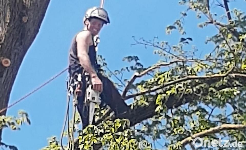 Baumkletterer arbeiten mehrere Stunde