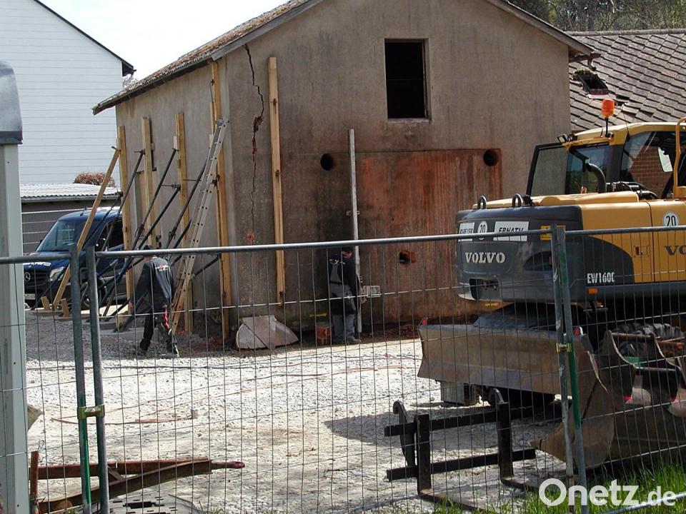 Wie bringt man ein altes Schlachthaus "zum Schweben"? Der Begriff ist in aller Munde. Es handelt sich um das derzeit in der Sanierung befindliche Gebäude an der Ortseinfahrt aus Richtung Kemnath kommend. Es soll einmal Mittelpunkt des Ortes werden und zur Symbolik für die Wiederbelebung des Ortskerns. Das Haus steht auf "schwammigem" Untergrund, einen Weiher gab es früher hier, entsprechend weich ist der Boden.