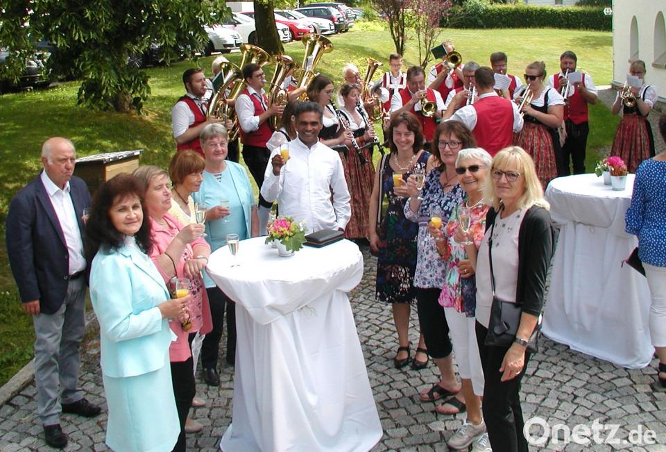 In einem kleinen aber feinen Rahmen feierten die Gläubigen der Pfarrei Herz Jesu ihr Patrozinium zum 80jährigen Bestehen ihrer Pfarrkirche. Als die ersten Kirchenbesucher eintrafen, war der Kirchplatz bereits festlich eingedeckt. Die Mitglieder des Pfarrgemeinderats hatten Stehtische mit Hussen aufgestellt und liebevoll mit Blumengestecken versehen. Einige Brander Vereine sammelten sich am Pfarrheim und pünktlich setzte sich der Zug zur Kirche unter den Klängen der Fichtelgebirgskapelle Ebnath unter der Leitung von Johannes Prechtl in Bewegung. Feierliches Orgelspiel empfing den Kirchenzug mit Pater Joy und den Ministranten, Gemeindereferentin Gabriele Sieder und den Vereinsabordnungen in der Kirche. Ein großer Dank sollte am Beginn des Gottesdienstes stehen, sagte Pater Joy eingangs. Dank den Brandern, die in schwieriger Zeit trotz des drohenden Krieges ihren Wunsch nach einer größeren Kirche in die Tat umsetzten, die ihre letzten Pfennige zusammenrafften und sogar Schulden machten, um etwas beitragen zu können. "Ein wunderbares Zeugnis des Glaubens mitten im Dorf", fasste er zusammen. Große körperliche Mühen seien notwendig gewesen, um die nötigen Eigenleistungen erbringen zu können. Mit Gottes Hilfe sei das Werk gelungen. Da konnte als Eingangslied nur folgen "Nun danket alle Gott", begleitet von der Blaskapelle und Orgel gemeinsam. Auch in den Fürbitten wurden alle mit ins Gebet eingeschlossen, die Anteil am Bau der Kirche haben, auch dass die Kirche als Ort der Zuflucht und der Geborgenheit erhalten bleibt und auch dafür, dass die Kirche stets Antworten finde auf die Fragen in den Herausforderungen dieser schwierigen Zeit. In seiner Predigt stellte Pater Joy die Frage nach der Bedeutung einer Kirche für die Gläubigen. Vieles vermisse man erst dann, wenn es unwiederbringlich verloren sei wie eine kleine Dorfschule oder einen Laden, der auch einmal Treffpunkt war. Ein Dorf ohne Kirche sei einfach nicht denkbar, auch jene, die keine sehr intensive Beziehung zu ihr hätten, würden sie vermissen. Freude, Leid und Enttäuschung habe die Kirche erlebt und vielen habe sich hier bei Taufen, Hochzeiten und anderen Feierlichkeiten ein Fenster zum Himmel geöffnet. Es gelte nun, dafür zu beten, dass die Kirche Herz Jesu in Brand als Lebensmittelpunkt erhalten bleibe. Vor dem Schlusssegen zeigte Bertram Nold als Vertreter des Pfarrgemeinderats eine Computer-Präsentation vom Bau der Kirche und der weiteren Entwicklung, angefangen mit Fotos der ersten Kirche bis hin zu den Priestern, die seit der Fertigstellung der Kirche in Brand tätig waren. Mit einem kräftigen "Großer Gott, wir loben dich", begleitet von Orgel und Blaskapelle und dem Geläut der vier Glocken wurde der Gottesdienst beendet. Den Festakt auf dem Kirchplatz begann die Blaskapelle mit einem Choral, bevor Pfarrgemeinderats-Sprecherin Sabine König die Gäste begrüßte und allen herzlich dankte, die zum Gelingen des Festes etwas beigetragen haben. Kirchenpfleger Alfons Brucker gab einen Überblick über die immer wieder ergänzte und erneuerte Gestaltung der Kirche und des Kirchenraumes. Immer dann, wenn etwas Geld vorhanden war, habe man entsprechende Investitionen vorgenommen, zuletzt die Anschaffung der neuen Orgel. Mit einem Glas Sekt wurde auf den freudigen Anlass angestoßen, um den offiziellen Teil des Festaktes mit dem Singen der Bayernhymne zu beenden.